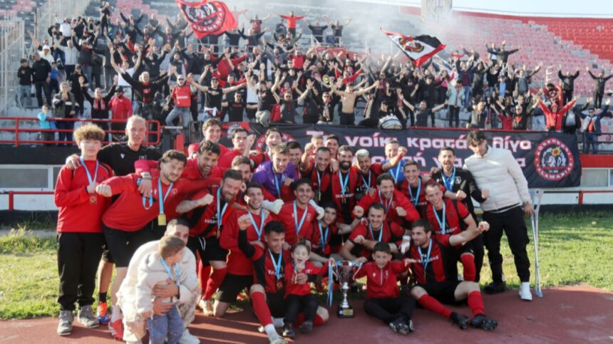 Μπροστά στον εκδηλωτικό κόσμο τους, που τραγουδούσε διαρκώς και άναψε καπνογόνα, οι «κοκκινόμαυροι» σήκωσαν στον ουρανό της Καλαμαριάς το Κύπελλο, το οποίο παρέδωσε στο γκρουπ των αρχηγών (Πιαστόπουλος, Τσιμπούκας, Αθανασιάδης) ο πρόεδρος της ΕΠΣ Μακεδονίας, Σάββας Δημητριάδης.
