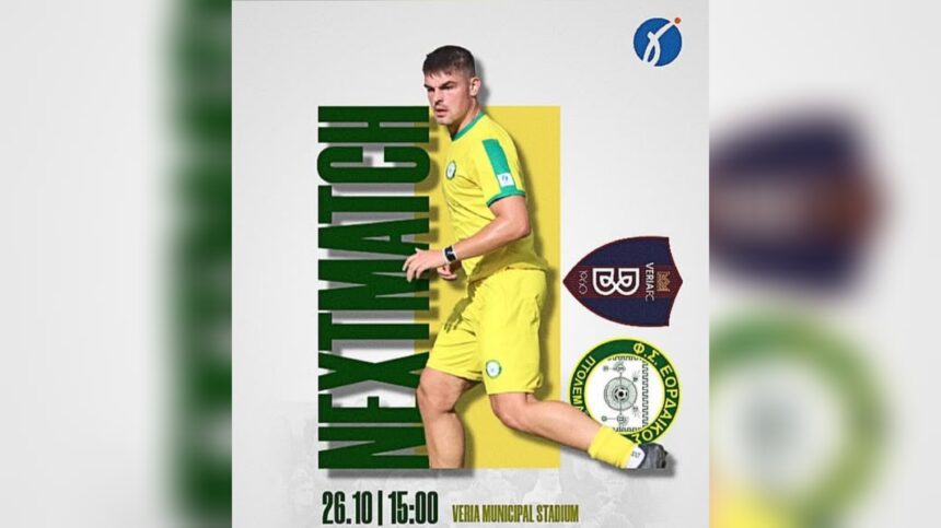 Η ομάδα μας θα αντιμετωπίσει για την 6η αγωνιστική του πρωταθλήματος της Γ’ Εθνικής (2ος Όμιλος) την ομάδα της Βέροιας, εκτός έδρας.
