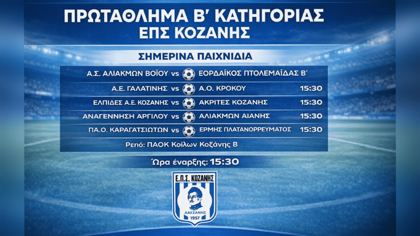 ΠΑ.Ο.Καραγατσιωτών – Ερμής Πλατανορρεύματος. 11:00 Ελπίδες Α.Ε. Κοζάνης – Ακρίτες Κοζάνης