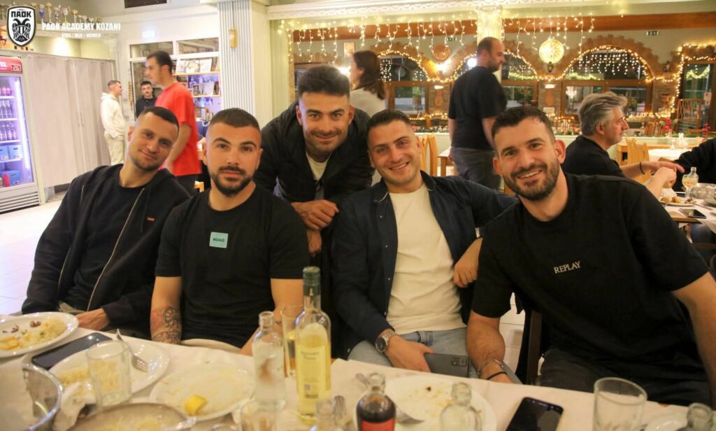Παρευρέθηκαν οι ποδοσφαιριστές της ανδρικής ομάδας, ο προπονητής μας, μέλη της διοίκησης, καθώς και προπονητές από την Ακαδημία μας, συζητώντας σε χαλαρή ατμόσφαιρα και απολαμβάνοντας τη γνωστή φιλοξενία και τις εξαιρετικές γεύσεις του καταστήματος.