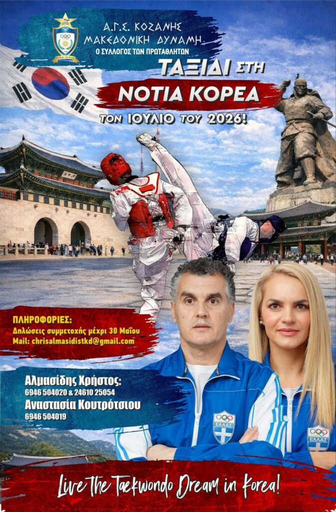 Για 25η χρονιά, ο σύλλογός μας, Μακεδονική Δύναμη Κοζάνης, ταξιδεύει στη Νότια Κορέα, τη χώρα που δημιούργησε και ανέδειξε το Ολυμπιακό άθλημα του Taekwondo — το οποίο σήμερα αποτελεί το πρώτο ατομικό Ολυμπιακό αγώνισμα στη χώρα μας σε αριθμό σωματείων και αθλητών.