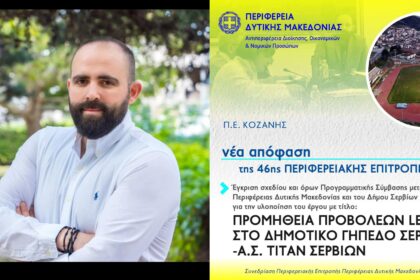 Περιφέρεια Δυτικής Μακεδονίας «Προμήθεια Προβολέων LED στο Δημοτικό Γήπεδο Σερβίων – Α.Σ.Τιτάν Σερβίων