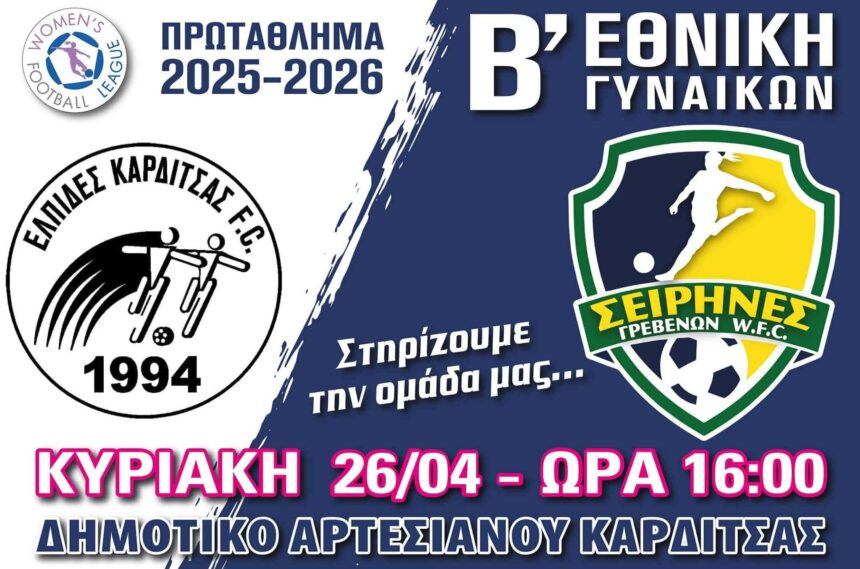 Με την τελευταία αγωνιστική πέφτει η αυλαία του φετινού πρωταθλήματος της Β'Εθνικής Κατηγορίας Γυναικών στον 1ο Όμιλο.Οι πρωτοπόρες και Πρωταθλήτριες Σειρήνες Γρεβενών θα αγωνιστούν στην Καρδίτσα με τις Ελπίδες Καρδίτσας…