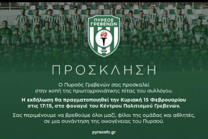 Ετήσια κοπή πίτας του Πυρσού Γρεβενών την Κυριακή 15.02 Ο Πυρσός Γρεβενών…